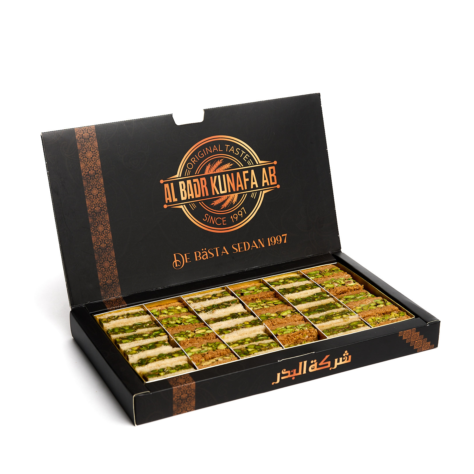 Baklawa Mix with pistachio and/or cashew fillings – a delicacy that combines crispy filo pastry with a rich and tasty pistachio or cashew filling. Each layer of the thin pastry is carefully brushed with butter and baked to golden perfection, creating a wonderfully crispy texture. The nutty and aromatic pistachio filling provides a balanced sweetness and a unique taste experience. Perfect for brightening up festive occasions or as a luxurious dessert. A taste journey to the Middle East in just one bite!
